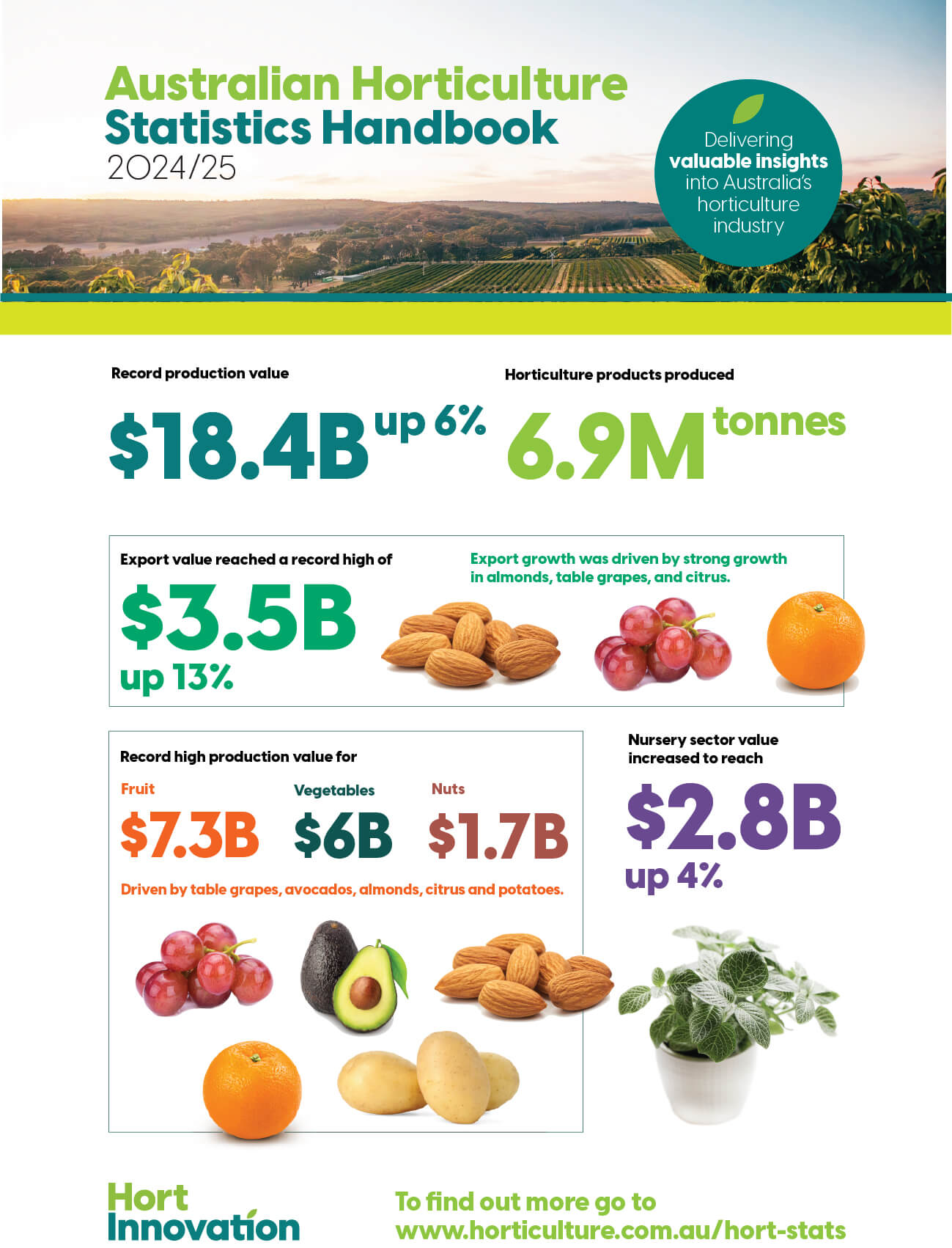 Australia’s horticulture sector has delivered a year of record‑breaking performance, with the 2024/25 Australian Horticulture Statistics Handbook revealing the industry has achieved its highest production value to date of $18.4 billion, up 6% on the previous year.